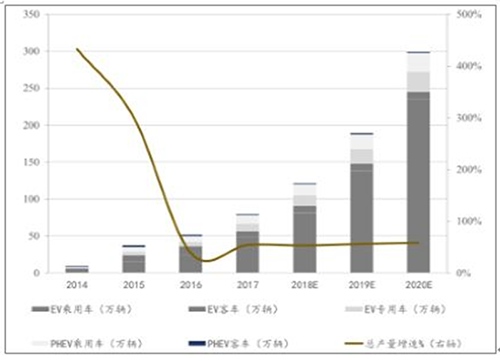 预计2020年中国新能源汽车销量达300万辆