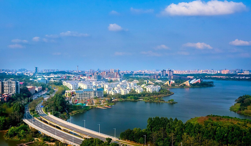 作为国家级高新技术产业开发区,松山湖不仅成为了东莞自主创新的旗帜、还在生态文明建设上取得成效。松山湖坚持“科技共山水一色,新城与产业齐飞”的生态发展理念,融山、水、园为一体,建成了松湖烟雨、月荷湖公园等生态公园,完善城市服务体系,实现人与自然的和谐共处、经济社会与资源环境的协调发展。
