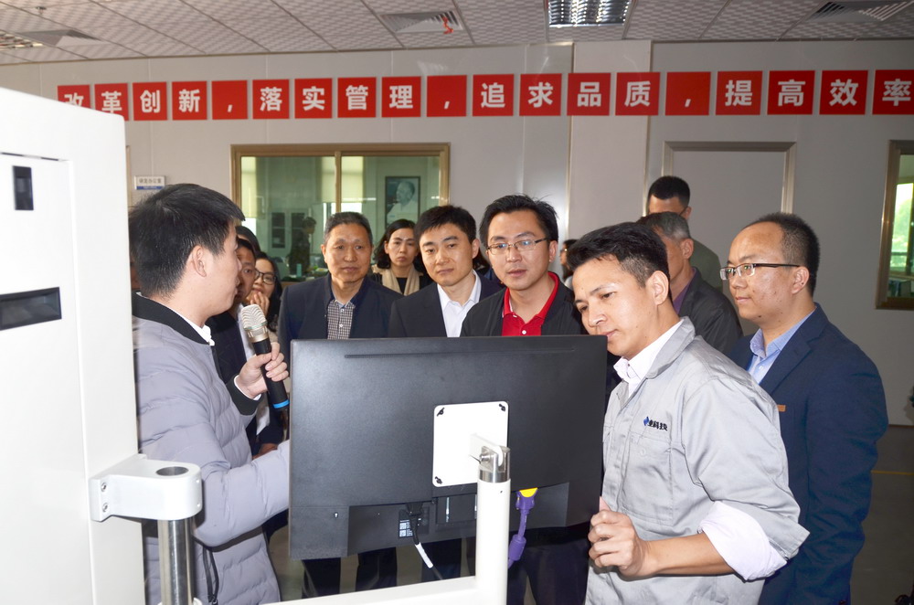 来访嘉宾参观了正业科技展厅和研发生产车间,总裁办品牌部经理周亮详细介绍了我司发展历程、行业布局以及公司的最新技术研发成果。