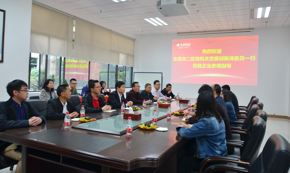 1月25日,为走进、了解和支持民营企业党建工作,东莞市二区检机关党委邱新涛委员一行20余人莅临正业科技进行参观考察交流。正业科技总裁办主任雷卓林、总裁办品牌部经理周亮等领导热情接待了来访嘉宾。