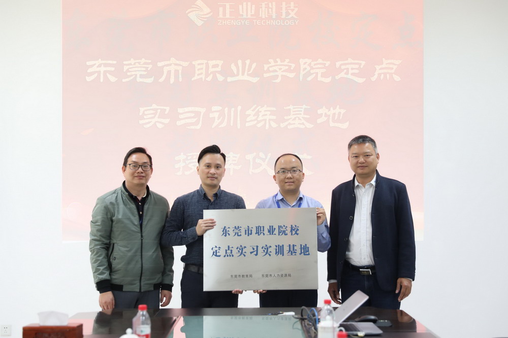 4月2日上午,正业科技“东莞职业院校定点实习实训基地”授牌仪式在松山湖总部大楼顺利召开,东莞市技师学院副院长张大庆、松山湖人力资源分局培训就业办副主任罗尧钧、校企合作与就业处副处长郭中华、赵伟荣老师以及正业科技总裁办主任雷卓林、人力资源中心经理吴雪等领导出席授牌仪式。