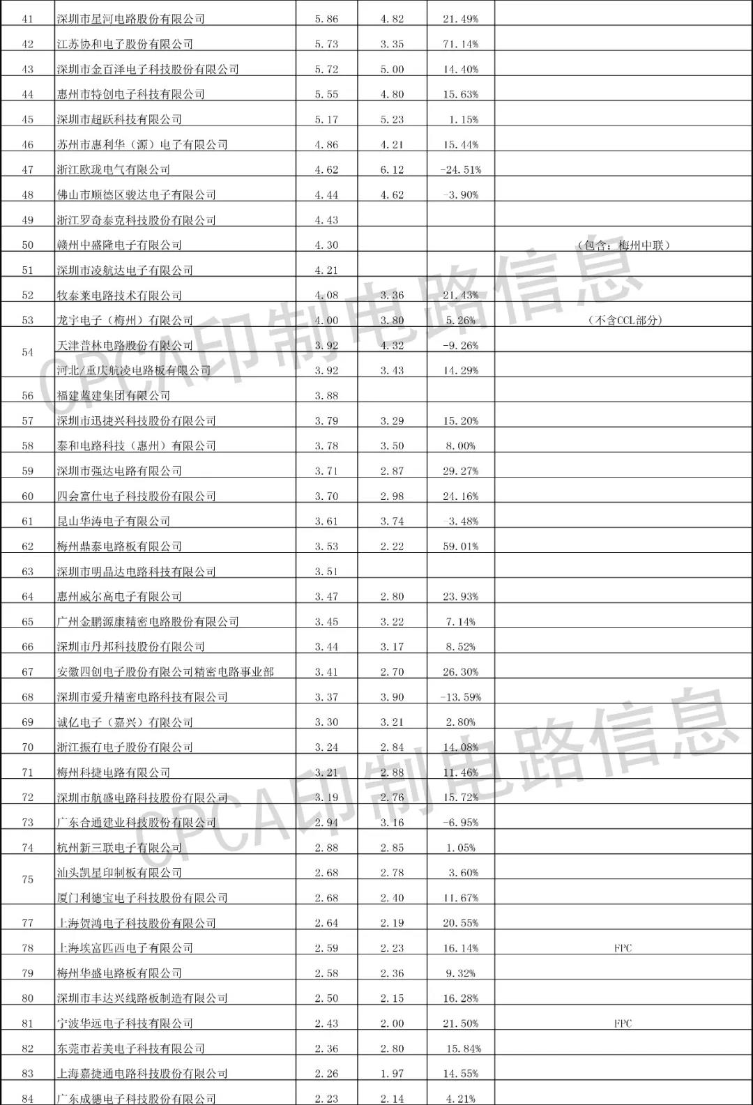 注:排行榜数据来源于CPCA印制电路信息