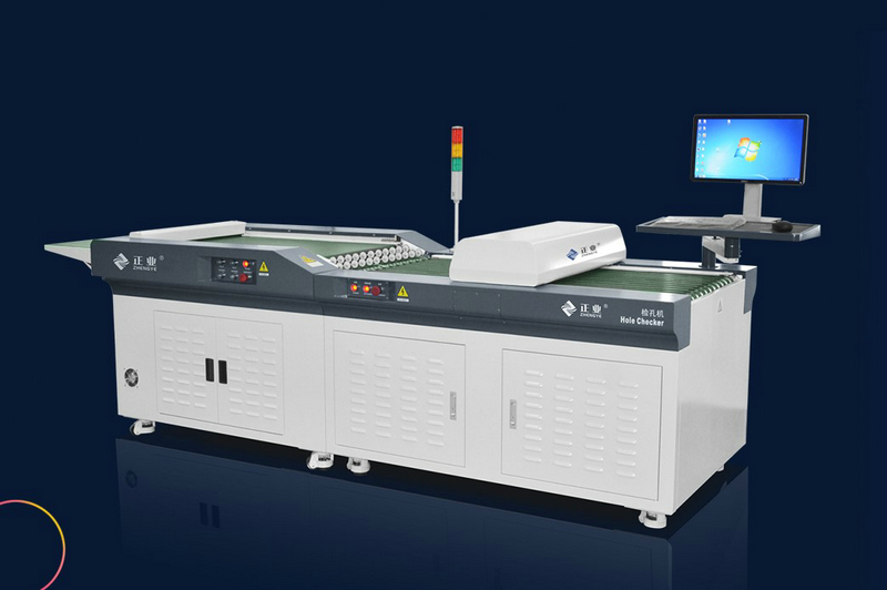 在线检孔机还可以实现少孔(漏钻、塞孔)、多孔(多钻,一分为二)、孔内异物、孔大、孔小、“一”字型槽孔的长、宽、槽孔毛刺以及其它不规则异型孔缺陷等检测。