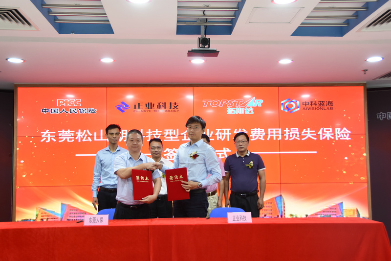 为科技项目研发提供基本保障,为提升科技创新能力提供持续动力,9月28日,正业科技、拓斯达、中科蓝海与人保财险东莞分公司举行签约仪式,签下“科技项目研发费用损失保险”保单。这是全省首单,标志着东莞成为全省首个为科技型企业研发过程的费用损失提供保障的地市。