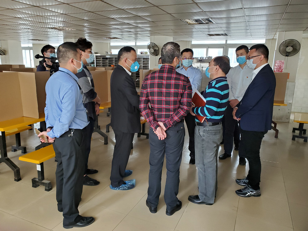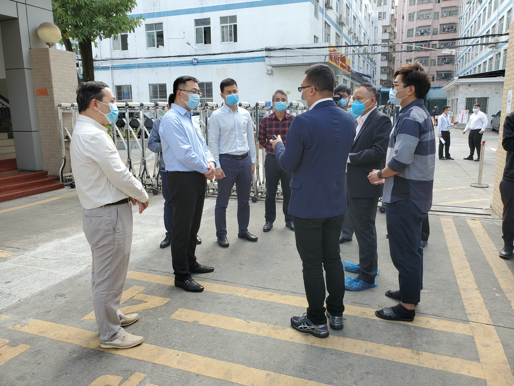 考察团进行实地调研,参观了集银科技办公区、生产车间、食堂,并肯定了公司在疫情防控、复工复产等方面取得的成效。深圳宝安区区委常委蔡英权表示,集银科技防控工作非常到位,后续在疫情未结束之前仍要稳打稳扎,不可松懈,加强管控,激励大家保持良好的心态、激昂的斗志,打好疫情防控阻击战,做好生产经营,并仔细询问了集银科技在复工复产中遇到的困难和需要,重点就疫情对公司国际市场的影响进行了深度调研和了解。