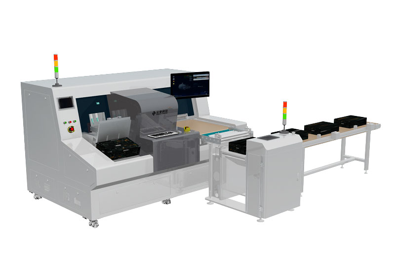 基于激光CCD位移传感器对5G高端线路板及普通线路板的成品板或覆铜板进行板弯板翘形变等缺陷自动检测,自动判定NG/OK,并通过收料台实现自动分类。
