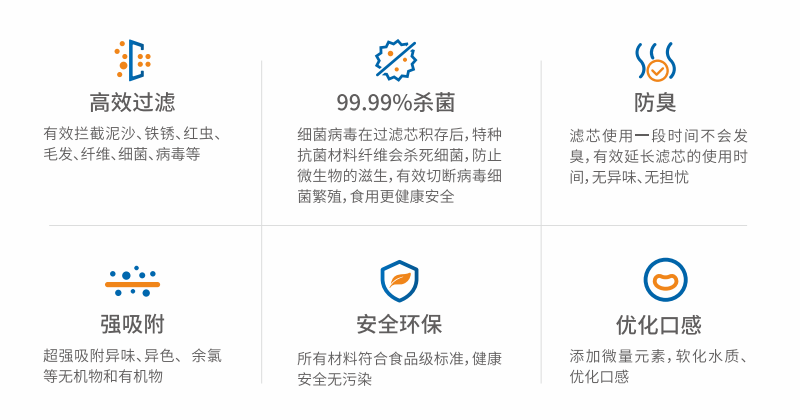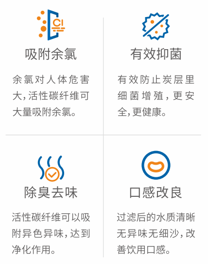 有效去除水中的杂质、铁锈、泥沙、虫卵等大颗粒物,层层过滤,吸附异色异味和余氯。