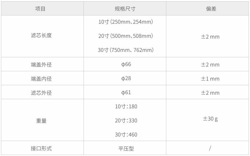 适用于家庭饮用水及食品饮料行业前置过滤处理,可有效除去液体中的固体微粒、铁锈等杂质,亦可适用于 PCB 制程及其他电镀生产线、高粘度的油墨、胶水的过滤。