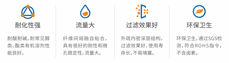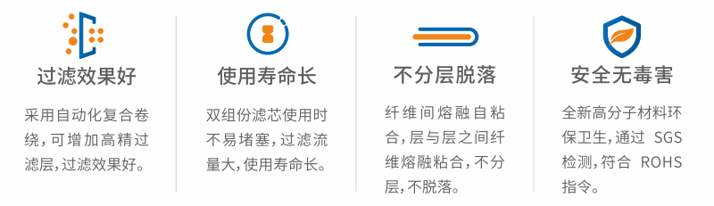 双组份滤芯,选用新型纤维材料,采用自熔粘结方式加工而成,具有高精度、强耐压、使用寿命长等特点,特别对粘度高的过滤液效果更佳。