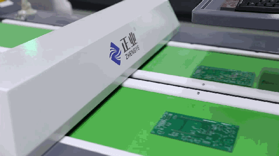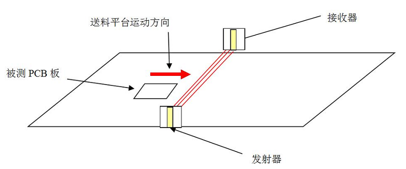 利用非接触式影像测量技术,通过一对高精度激光位移传感器,包括一个接收装置和一个发射装置,当覆铜板或PCB板经过这对位移传感器时,有板的地方将会阻挡发射装置发射的信号,从而在接收装置上无法响应相应位置的信号。