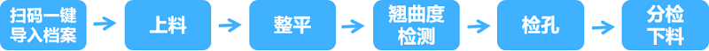 上板机+水平板翘反直机+板弯板翘检查机+在线检孔机+并联机器人