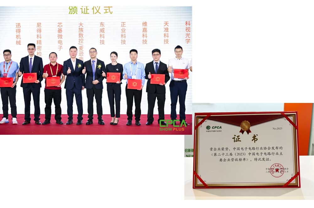 此外,正业科技荣登中国电子电路行业协会发布的《第二十三届(2023)中国电子电路行业主要企业营收榜单》,特此发证。