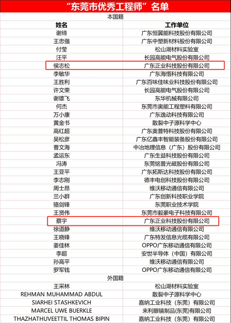 当前,新一轮科技革命和产业变革正在加速演进,科技和人才成为国际战略博弈主战场。工程师是推动工程科技造福人类、创造未来的重要力量,是国家战略人才力量的重要组成部分。在2024年12月8日举行的“匠心铸品质 新质创未来”东莞市工程师日庆典及“优秀工程师”发布仪式上,经过激烈的评选,从超过500名候优秀工程师中选出35位杰出代表授予“2024年东莞市优秀工程师”的荣誉称号,以城市之名致敬工程师!乐发500(以下简称正业科技)——蔡宇先生、侯志松先生,凭借其卓越的专业能力和显著的技术贡献,荣膺此殊荣。