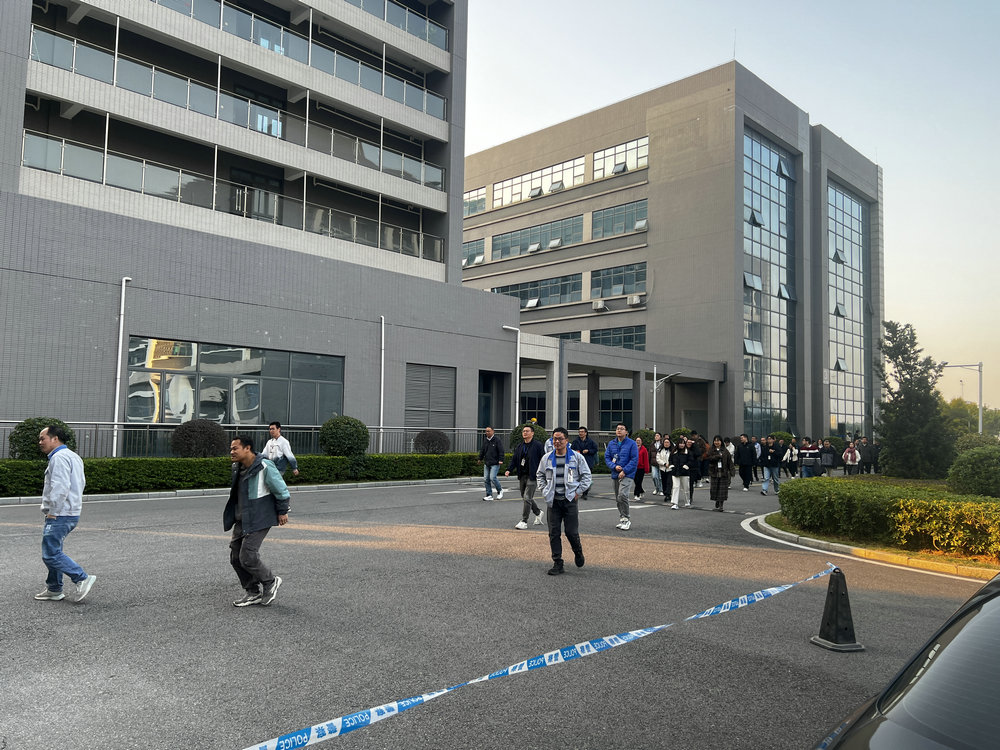 现场模拟园区4号楼2楼发生火灾,响起消防警报,我司义务消防员前往处置,因火势过大,请求松山湖消防大队支援。在我司义务消防员的指引下,全体职工按照既定的逃生路线,迅速有序地往大楼前的空旷地带撤离集合,全体职工紧张有序、弯腰前行,整个过程无踩踏拥挤、摔伤等现象,疏散过程有序严谨。