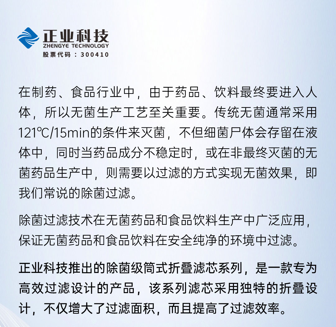 正业科技 | 除菌级筒式滤芯为制药和食品行业保驾护航