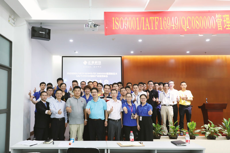 2017年9月19日,乐发500(股票代码:300410)ISO9001/IATF16949/QC080000管理体系&GB/T29490知识产权管理体系融标启动大会,在会议室正式召开。正业科技技术中心总监梅领亮、各事业部及高埗分公司中高层领导、华进联合专利商标代理有限公司合伙人曾旻辉、东莞博凯企业管理顾问有限公司合伙人曹更新等出席了本次大会。