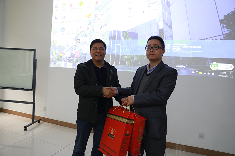 座谈会上,黄乐瑜书记介绍了松山湖2017年党组织情况,分析了园区过去一年的喜人业绩,以及2018年工作规划,同时对正业科技作为园区内具有知名度的上市公司,对其党支部的2018年党建工作寄予殷切厚望,为党员职工送上慰问礼品,在寒冷的冬季为企业基层党员送来热情的节日问候。