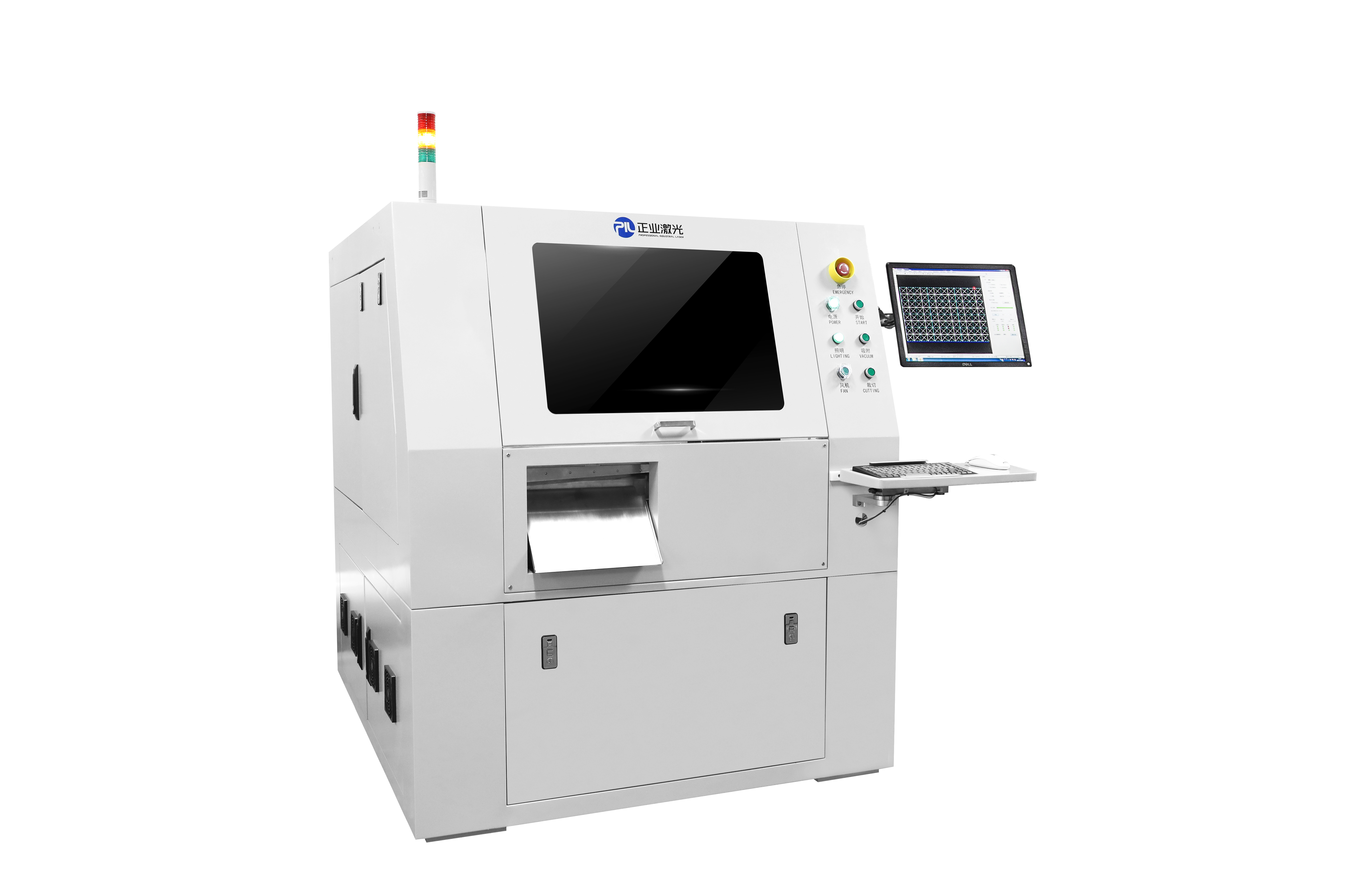 适用于覆盖膜开窗把卷料覆盖膜通过激光加工后裁切成单张只需把资料输入电脑,全自动完成所有动作无需人工干预,可节省人力成本