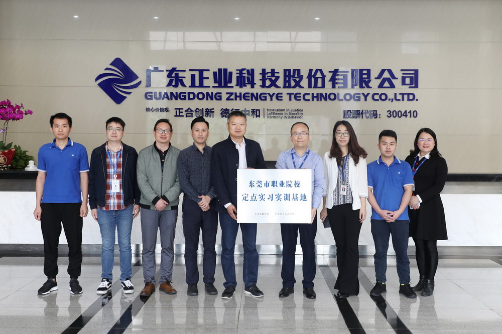 4月2日上午,正业科技“东莞职业院校定点实习实训基地”授牌仪式在松山湖总部大楼顺利召开,东莞市技师学院副院长张大庆、松山湖人力资源分局培训就业办副主任罗尧钧、校企合作与就业处副处长郭中华、赵伟荣老师以及正业科技总裁办主任雷卓林、人力资源中心经理吴雪等领导出席授牌仪式。