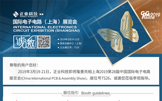 2019年3月19-21日,正业科技即将隆重亮相上海2019第28届中国国际电子电路展览会(China International PCB & Assembly Show),展位号7S26,诚邀您莅临参观指导。